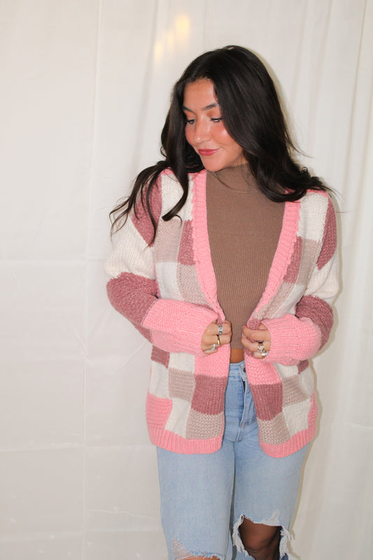 Pretty in Pink Color Block Knit Cardigan - Pink