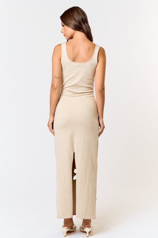 Gemma Flower Cut Out Bow Sweater Maxi Dress - Khaki