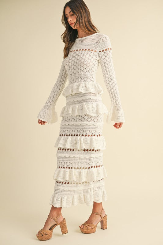 Palm Beach Ruffle Tiered Knit Maxi Dress - Cream