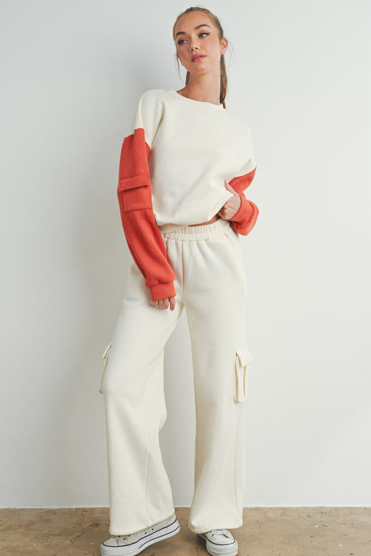 Everyday Cargo Fleece Flare Sweatpants - Ivory