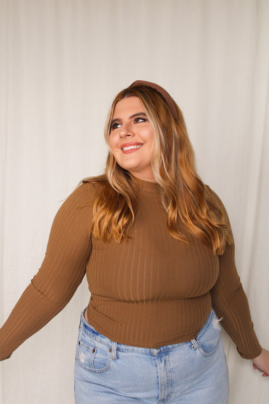 Ava Top & Leggings Ribbed Lounge Set - Brown
