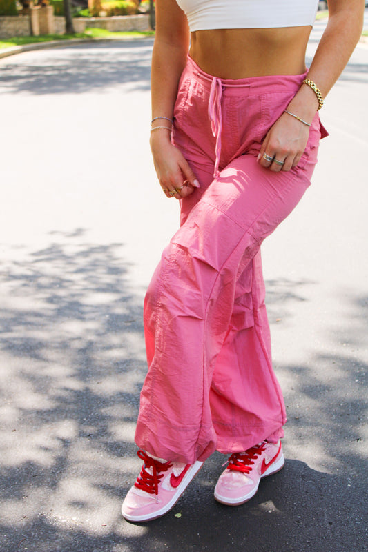 Lover Girl Relaxed Drape Cargo Pants - Rose Pink