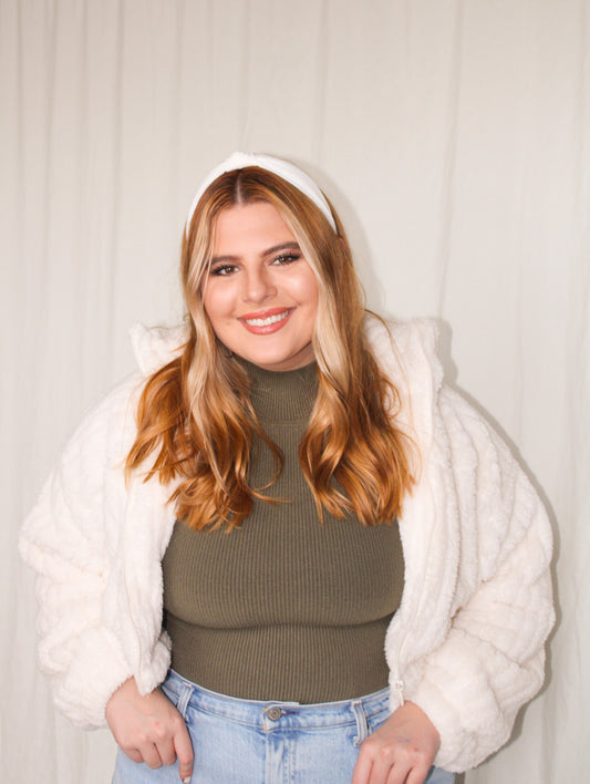 Cool Girl Cropped Fluffy Soft Fleece Jacket - Cream