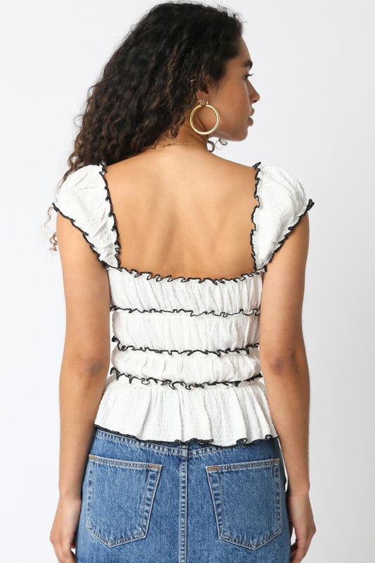 Lilah Ruffle Tiered Short Sleeve Cropped Blouse - White/Black