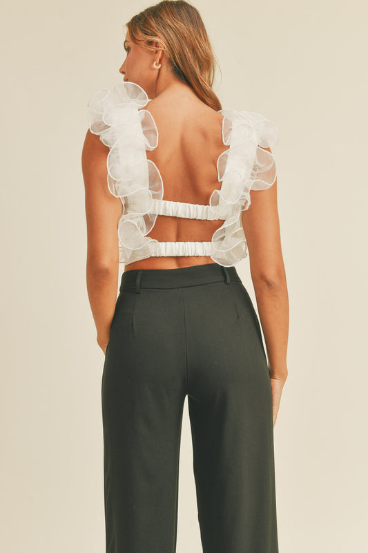 Sophia Open Back Ruffle Sleeve Crop Top - Off White