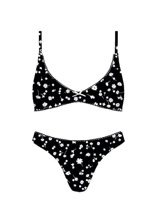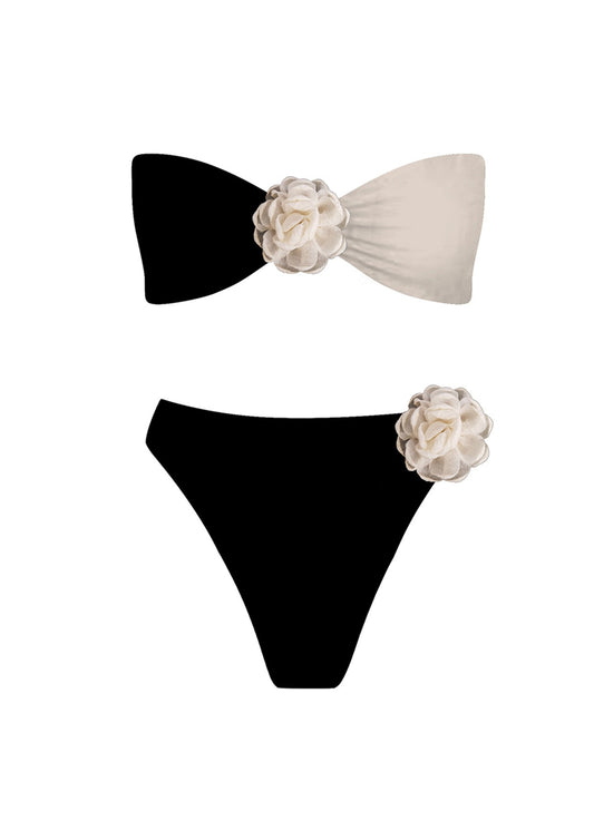 Rosie Strapless Rose Bikini Set - Black/Cream