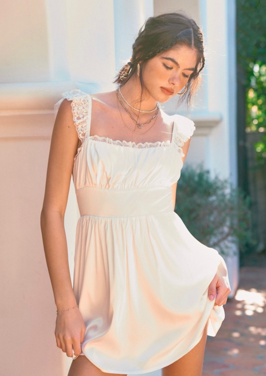 Vintage Era Lace Ruffle Hem Mini Dress - Off White