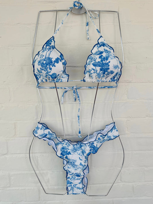 Santorini Ruffled Triangle Halter Bikini Set - Blue