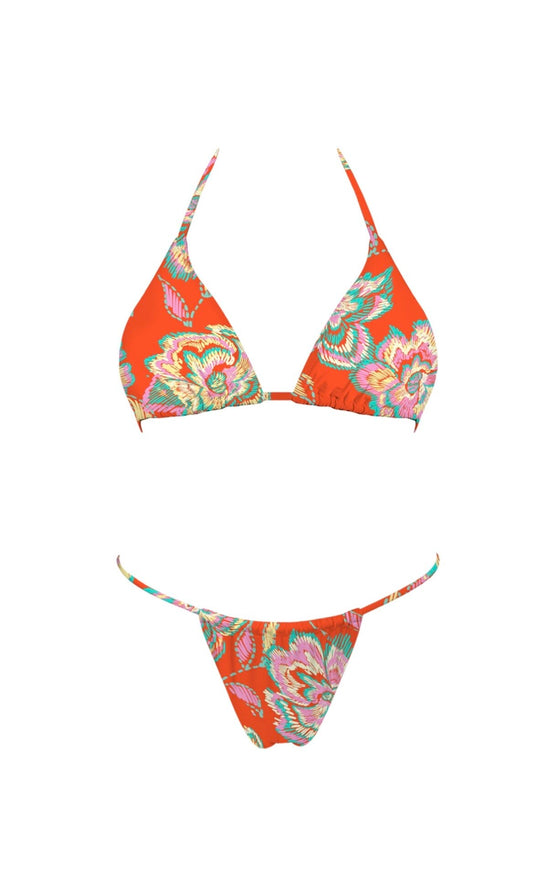 Tropical Sunset Floral Halter Bikini Set - Orange