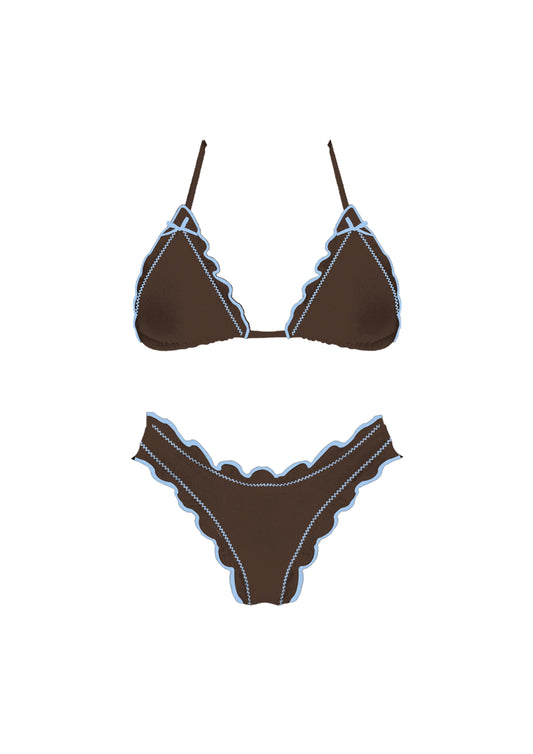 Wave Catcher Triangle Halter Bikini Set - Brown