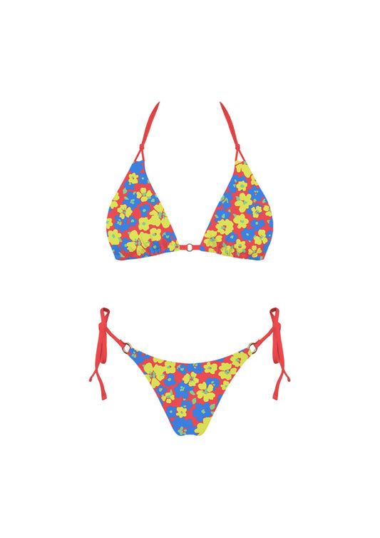 Santorini Ruffled Triangle Halter Bikini Set - Blue