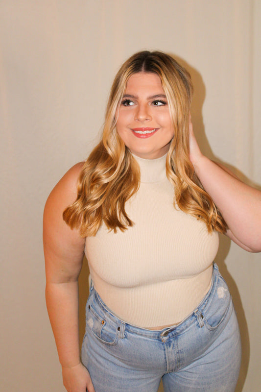 Lainey Mock Neck Ribbed Crop Tank - Oatmeal