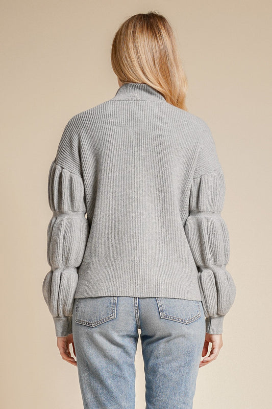 Chelsey Bubble Sleeve Soft Knit Sweater - Grey